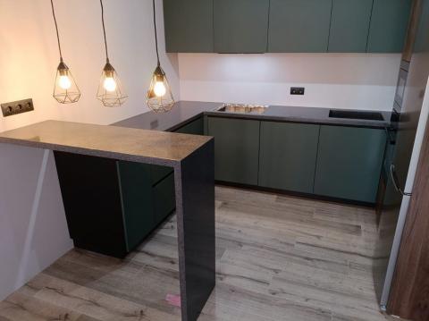 → Размер и форма Простые прямоугольные конструкции — наиболее бюджетный вариант. Угловые, П-образные, столешницы со сложными вырезами под варочную панель или мойку требуют больше материала и труда, поэтому стоят дороже.